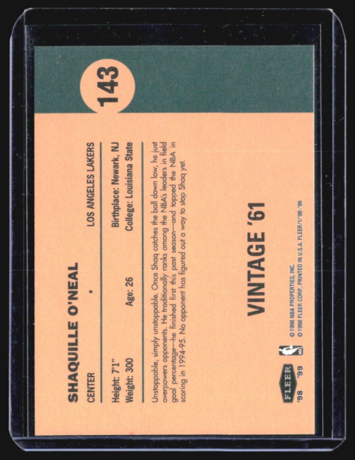 1998-99 Fleer Tradition - Vintage '61 #143 Shaquille O'Neal