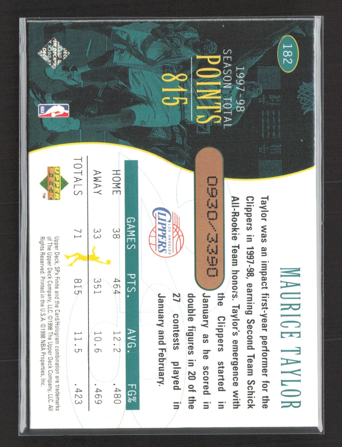 1998-99 SPx Finite - Top Flight Maurice Taylor #182 /3390
