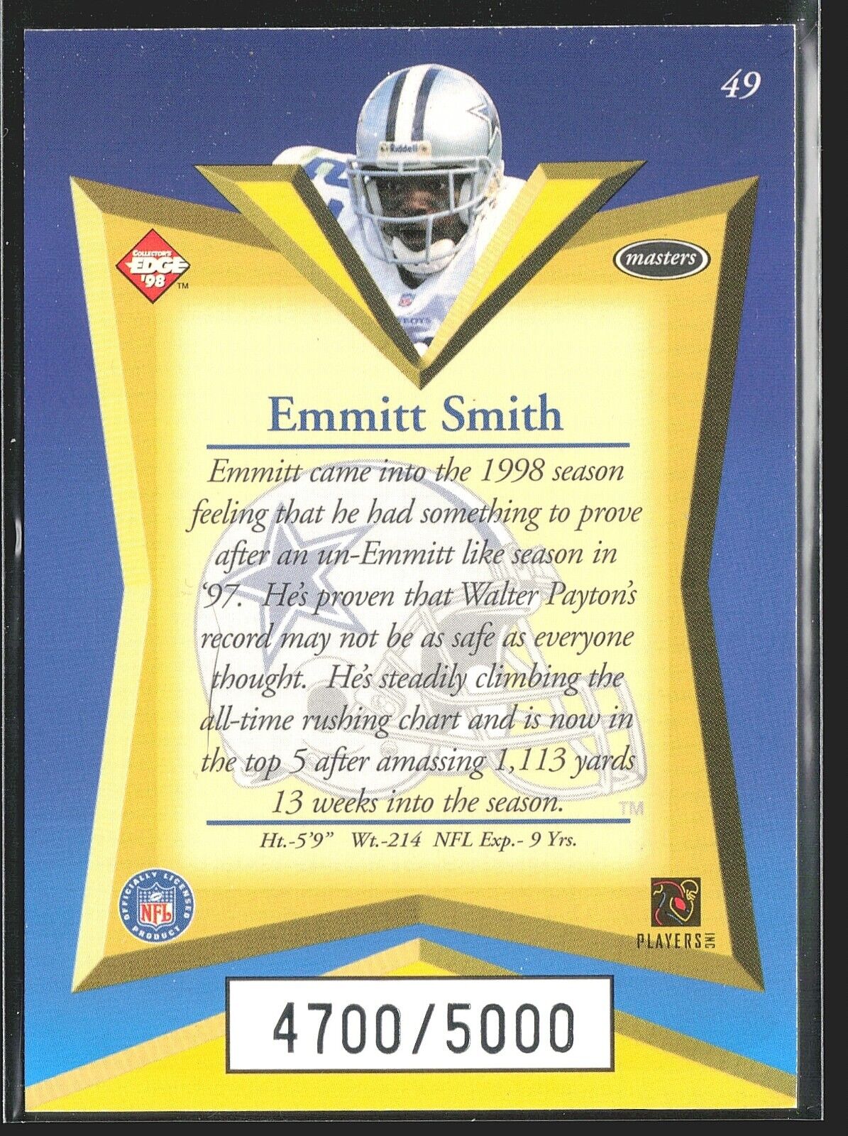 1998 Emmitt Smith Collector's Edge Master /5000 #49 Cowboys
