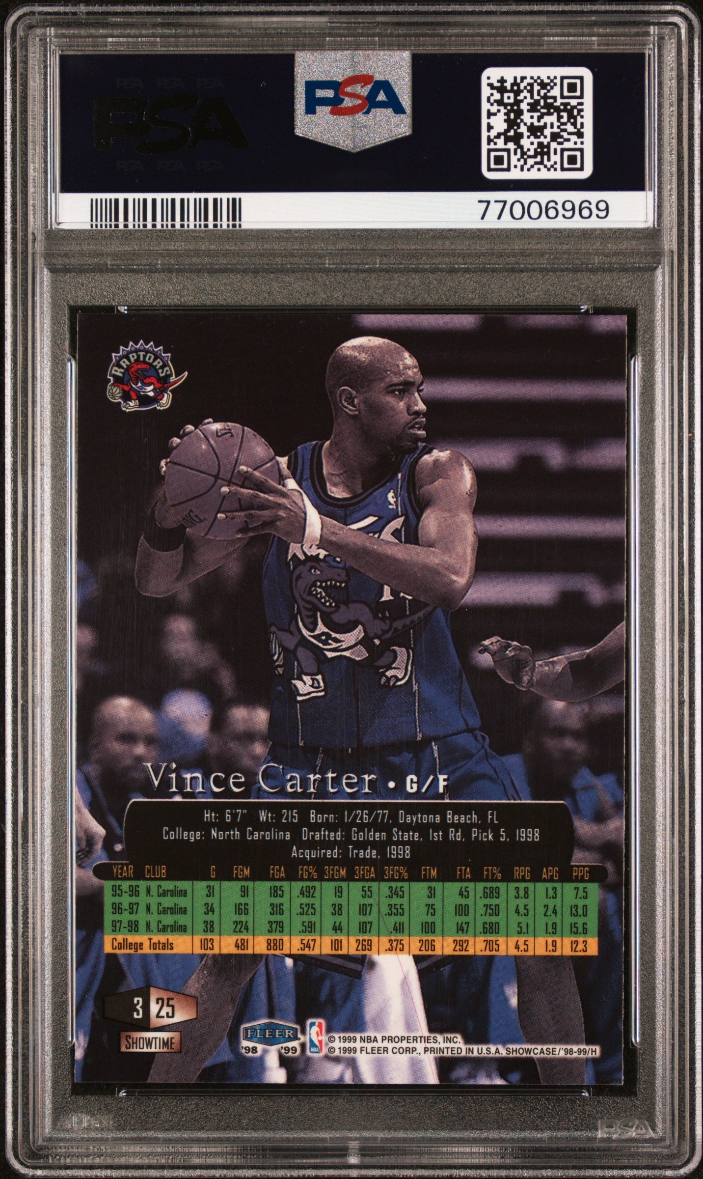 You are purchasing a 1998 Flair Showcase Vince Carter #25 Row 3 PSA 9. You will receive the exact item... Read more