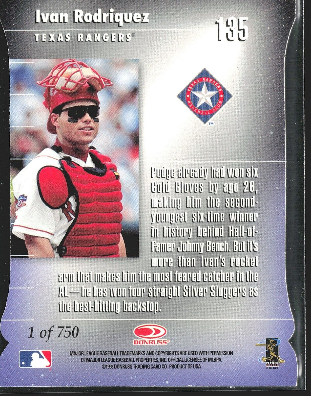 1998 Ivan Rodriguez Elite Aspirations Red /750 #135 Rangers