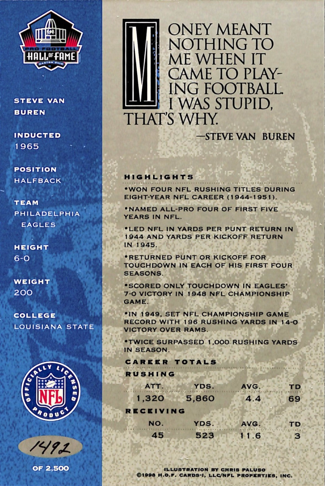 1998 NFL Hall of Fame Signature Series Steve Van Buren Auto /2500