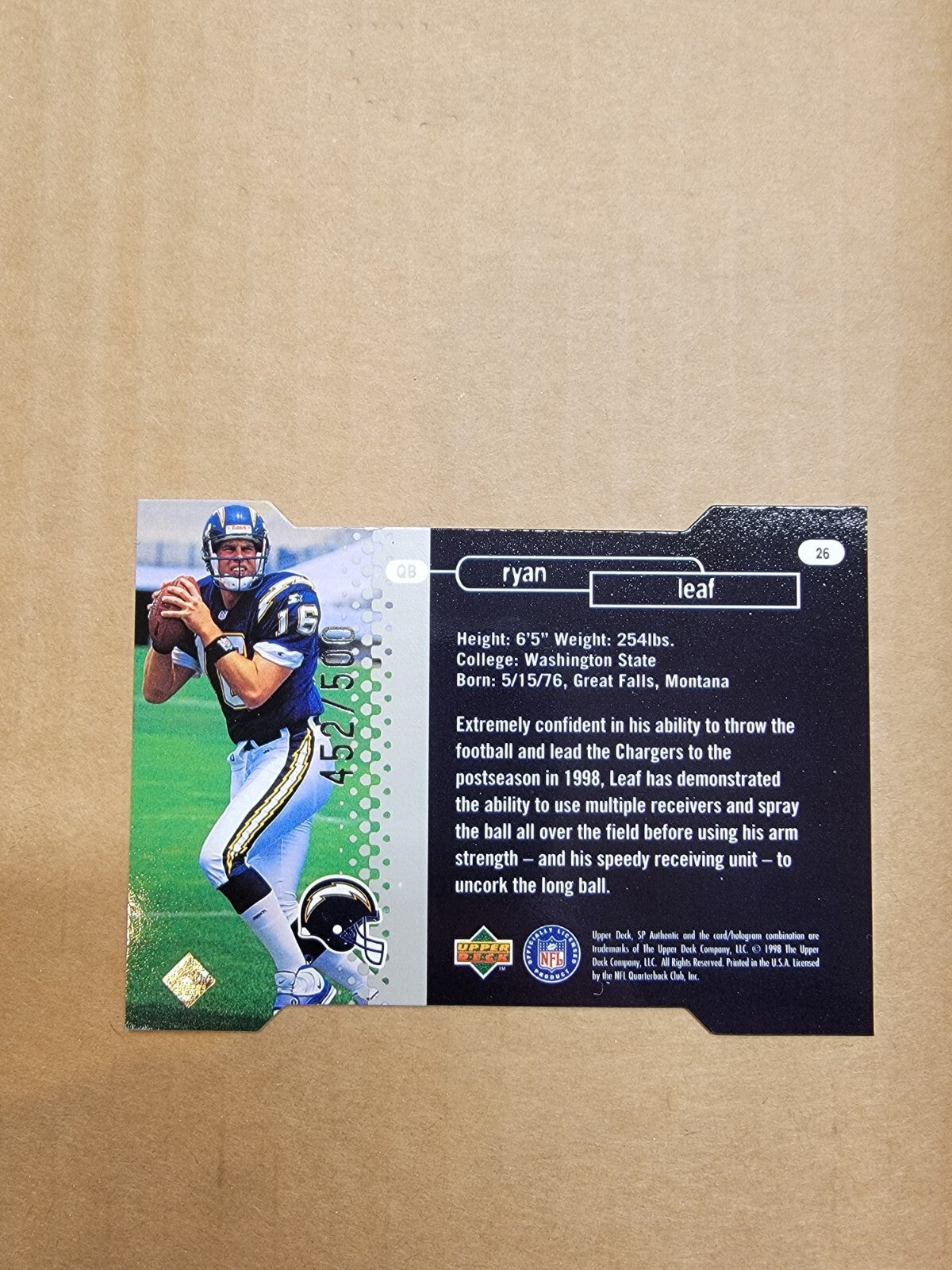 1998 Sp Authentic Ryan Leaf Die Cut Rc Rookie /500 Chargers #26