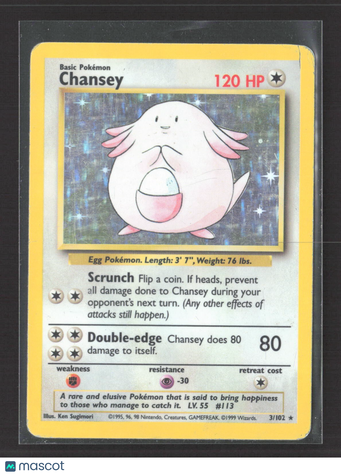 1999 Pokémon Chansey Base Set Unlimited Holofoil #3/102