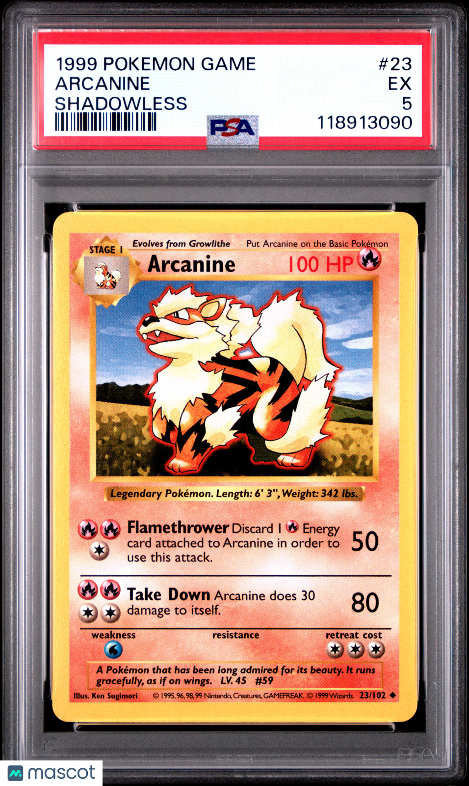 1999 Pokemon Game Arcanine Shadowless PSA 5 #23