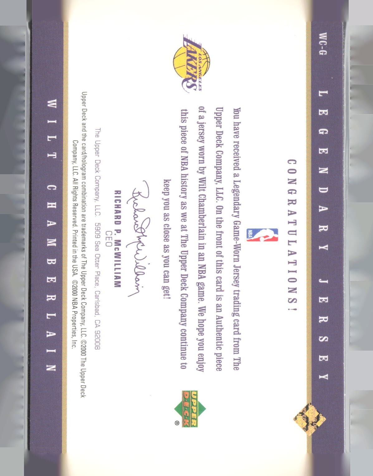 2000-01 UD NBA Legends - Legendary Jersey Wilt Chamberlain Gold /25 #WC-G