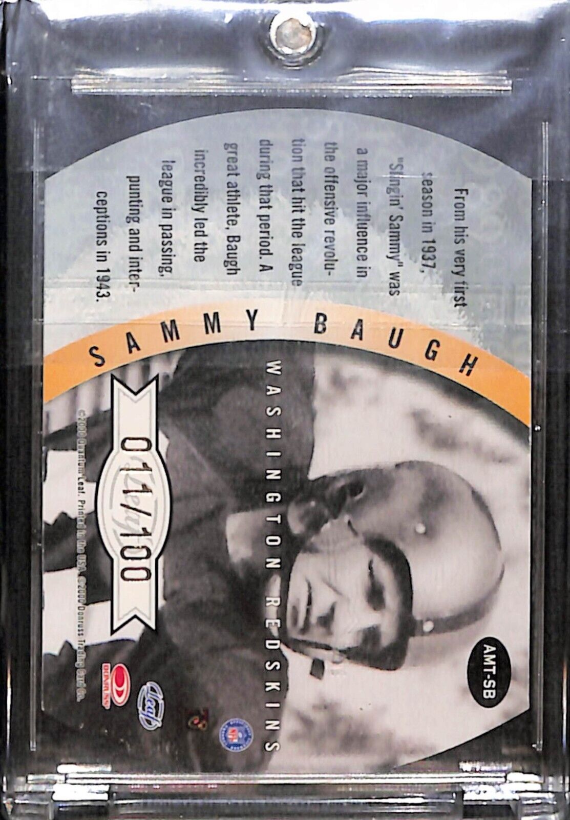 2000 Quantum Leaf Sammy Baugh All Millenium Team Auto /100 Redskins HOF