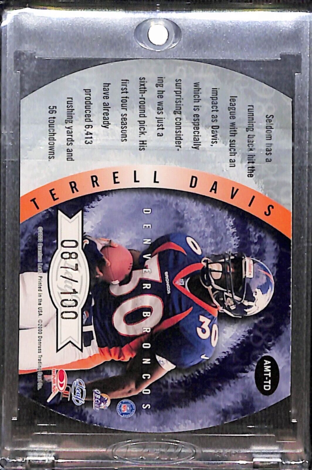 2000 Quantum Leaf Terrell Davis All Millenium Team Auto /100 Broncos HOF