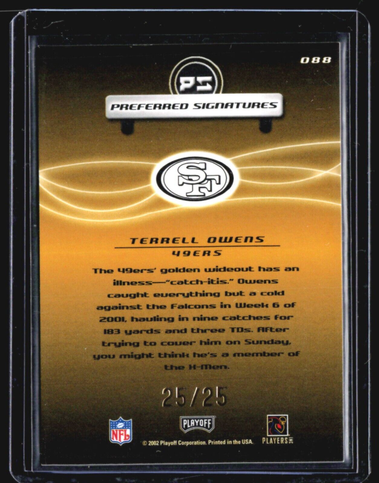 2001 Playoff Preferred - Signatures Gold #088 Terrell Owens /25 Auto