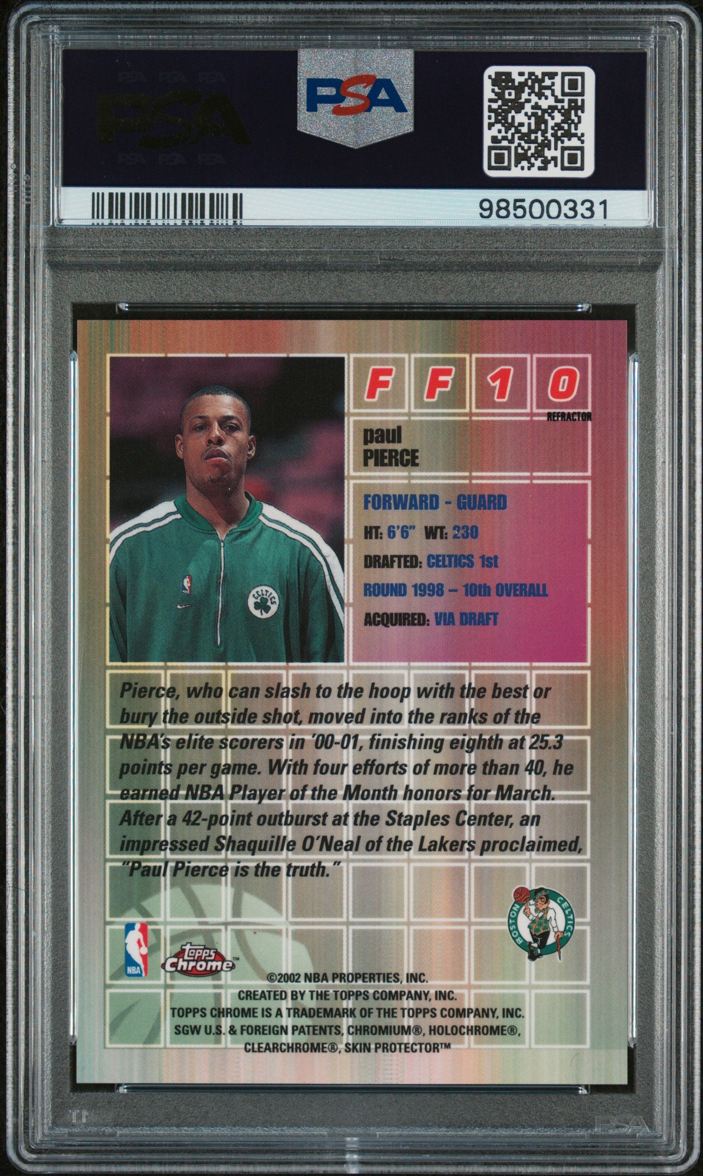 2001 Topps Chrome Fast & Furious Paul Pierce #FF10 Refractor PSA 10