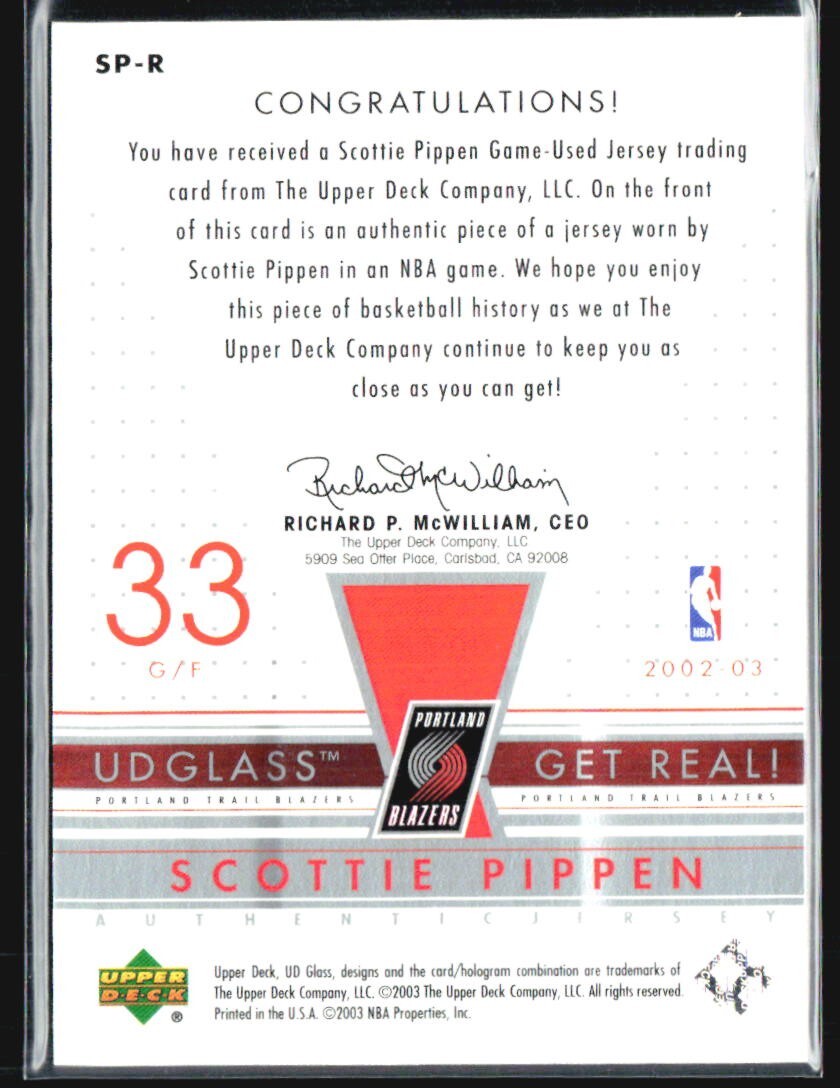 2002-03 UD Glass Get Real Scottie Pippen Jersey Relic #SP-R