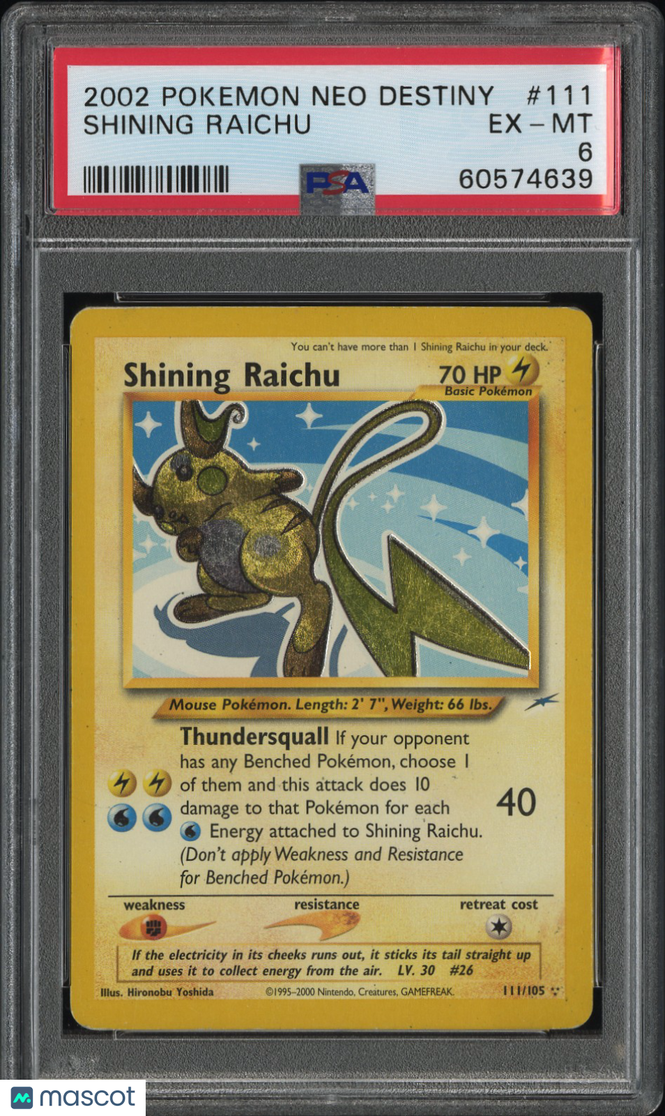 You are purchasing a 2002 Pokemon Neo Destiny Shining Raichu PSA 6 #111. You will receive the exact item in... Read more