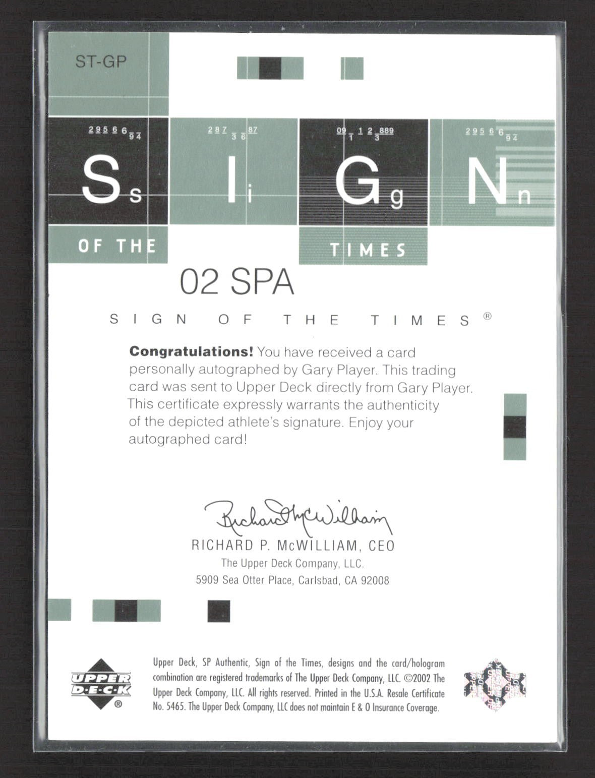 2002 SP Authentic Sign of the Times Gary Player Auto #ST-GP