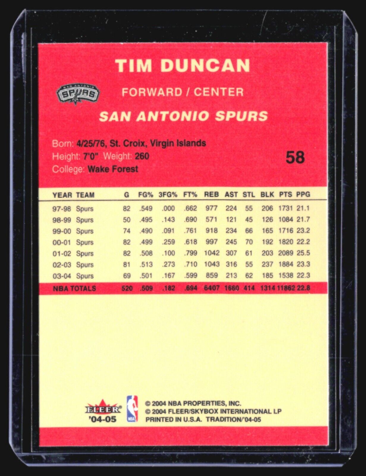 2004-05 Fleer Tradition - #58 Tim Duncan
