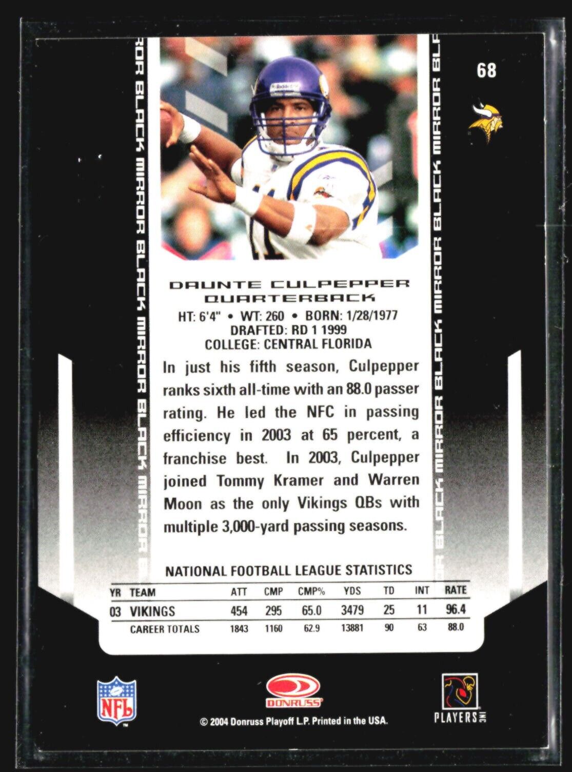 2004 Leaf Certified Materials - Mirror Black #68 Daunte Culpepper 1/1