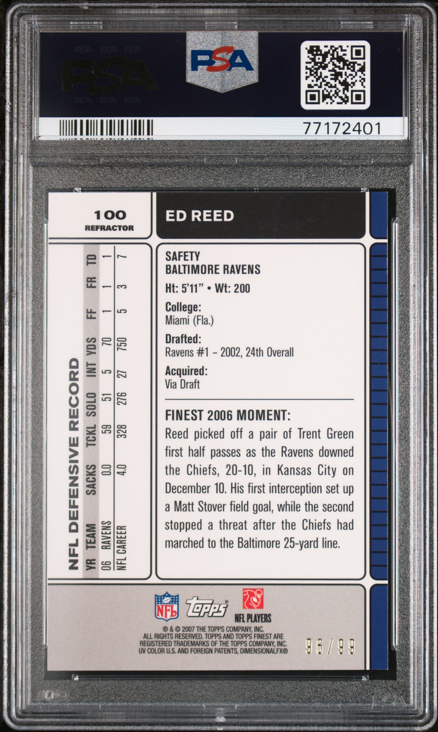 2007 Finest Ed Reed #100 Black Refractor PSA 10 /99