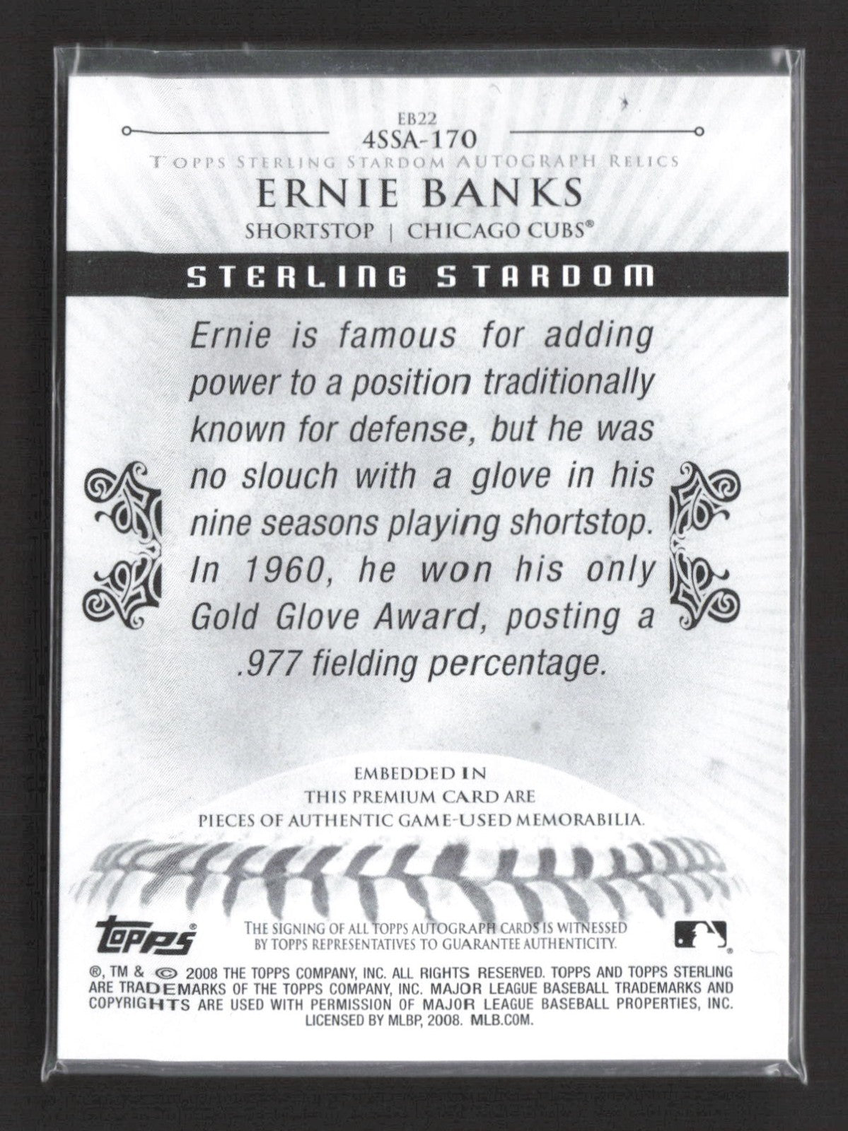 2008 Topps Sterling Ernie Banks Quad Jersey Bat Relic Auto /10 #4SSA-170