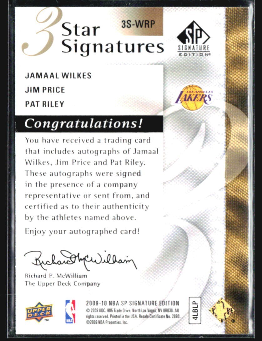 2009-10 SP Sig Editon 3 Star Jamaal Wilkes Jim Price Pat Riley Auto /35 #3S-WRP