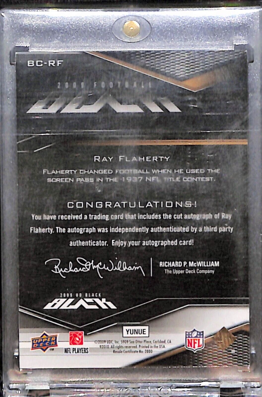 2009 UD Black Ray Flaherty Cut Auto /15 HOF