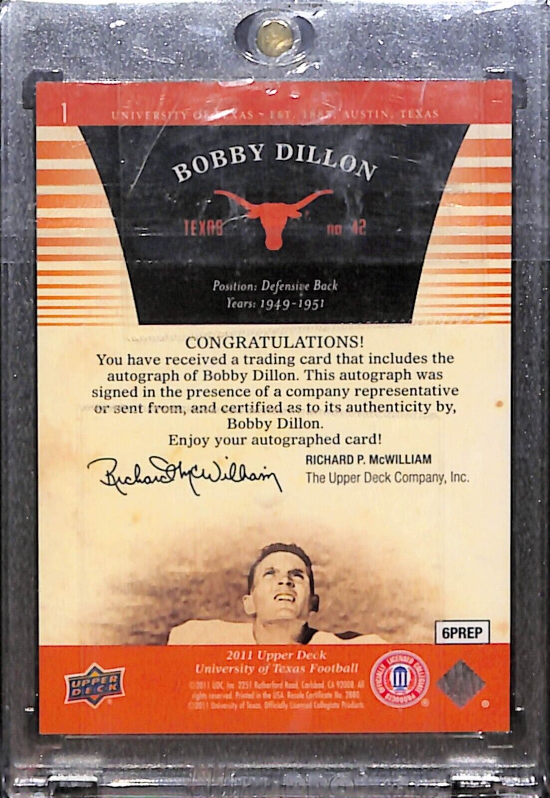 2011 Upper Deck University of Texas - #1 Bobby Dillon Auto sp HOF