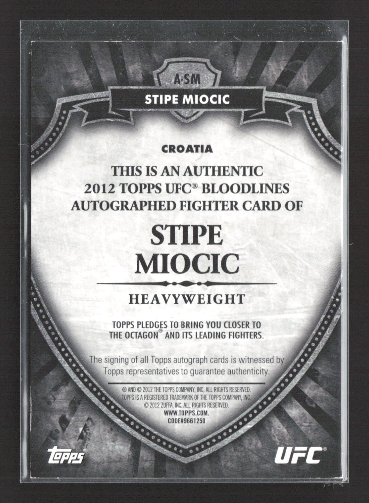 2012 Topps UFC Bloodlines - Stipe Miocic #A-SM (RC) Auto /449