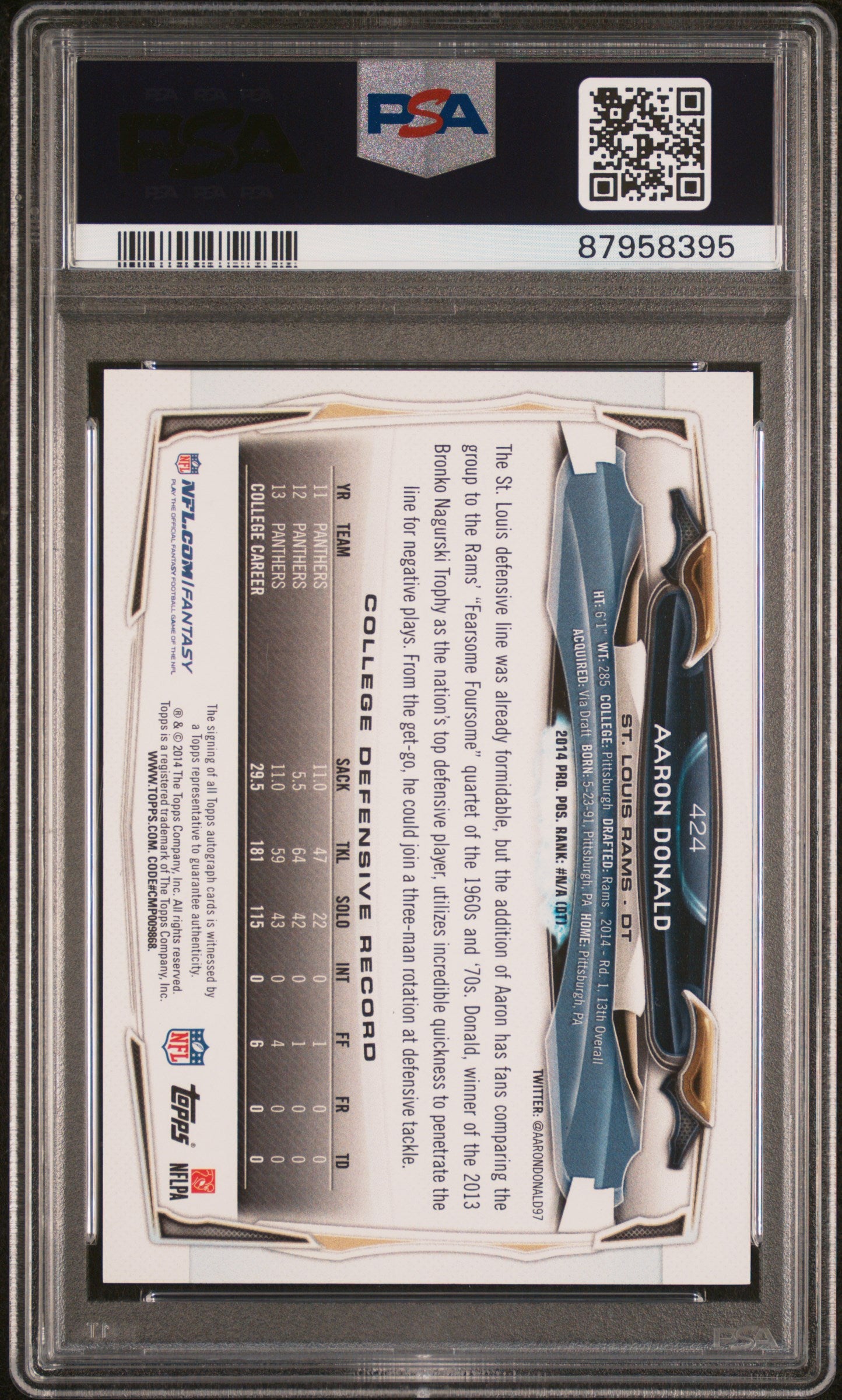 2014 Topps Aaron Donald #424 PSA 10 Helmet ssp Rc Auto
