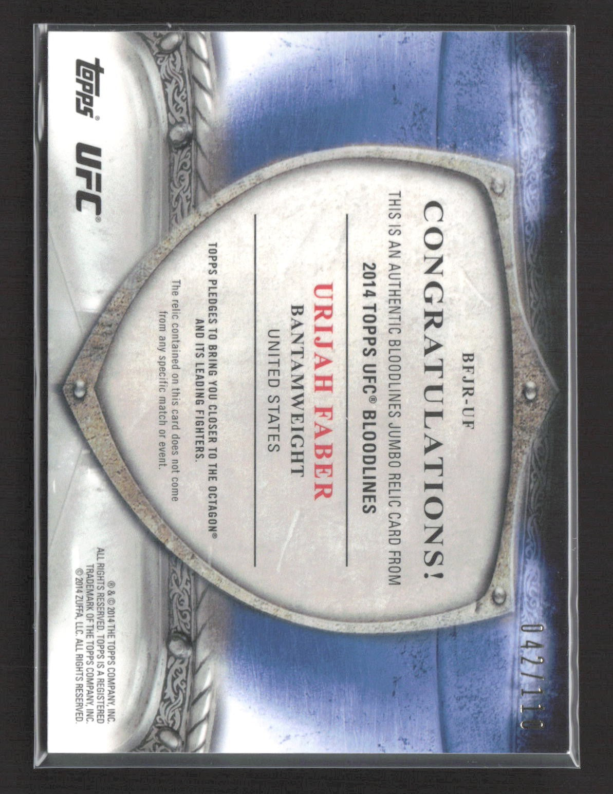 2014 Topps UFC Bloodlines Fighter Jumbo Relics Urijah Faber #BFJR-UF /110 MEM