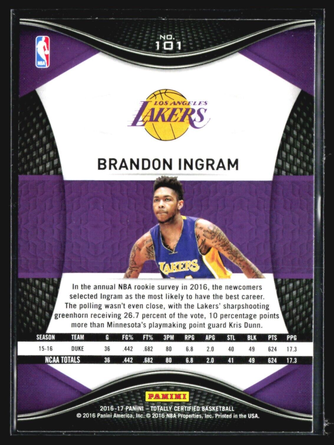 2016-17 Panini Totally Certified - Rookies #101 Brandon Ingram (RC)
