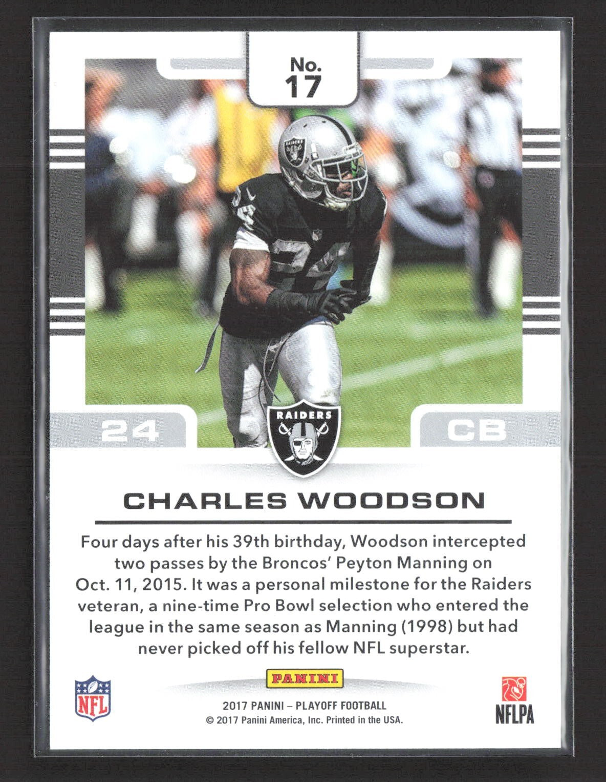 2017 Panini Playoff - Gridiron Force Charles Woodson #17 Platinum 1/1