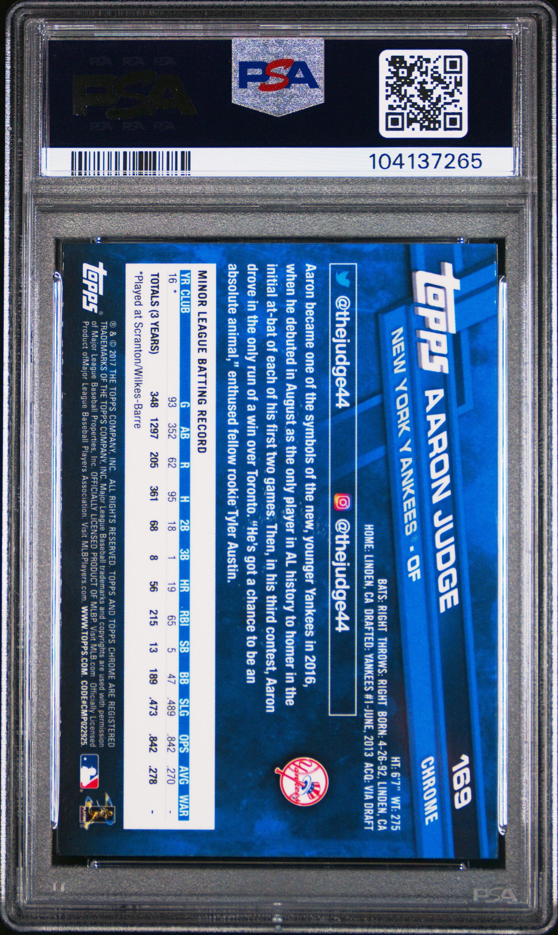 2017 Topps Chrome Aaron Judge #169 PSA 10