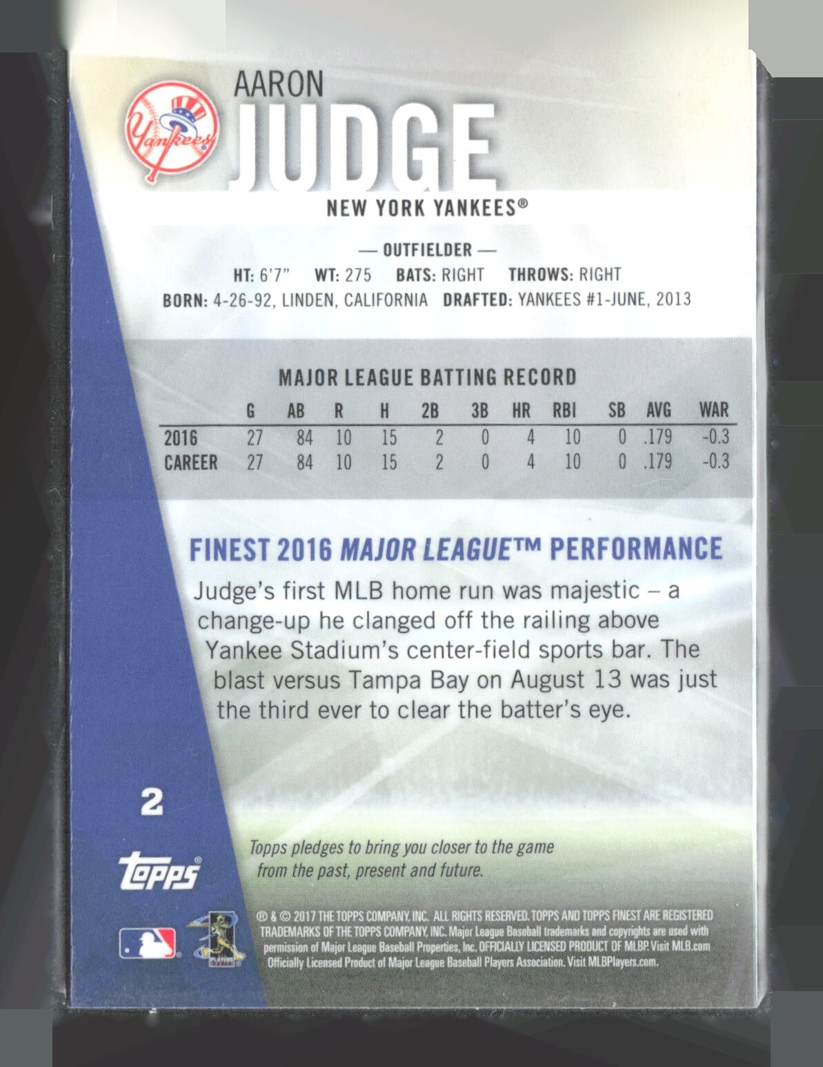 2017 Topps Finest - Aaron Judge #2 (RC)