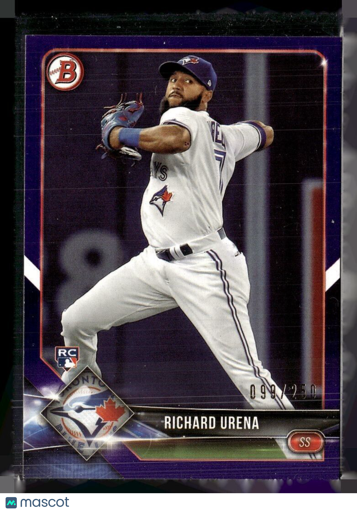 2018 BOWMAN PURPLE /250 ROOKIE RICHARD URENA BLUE JAYS