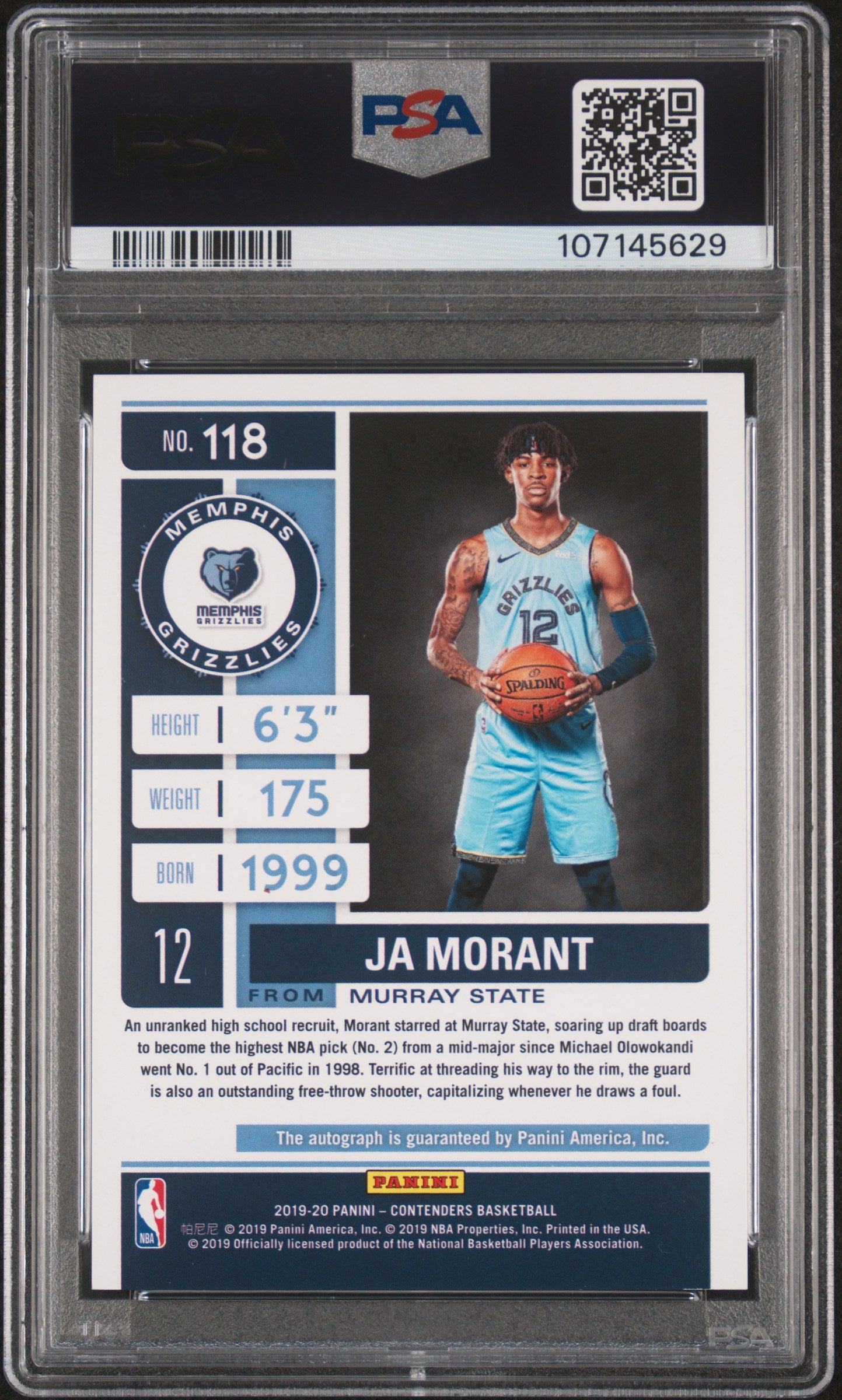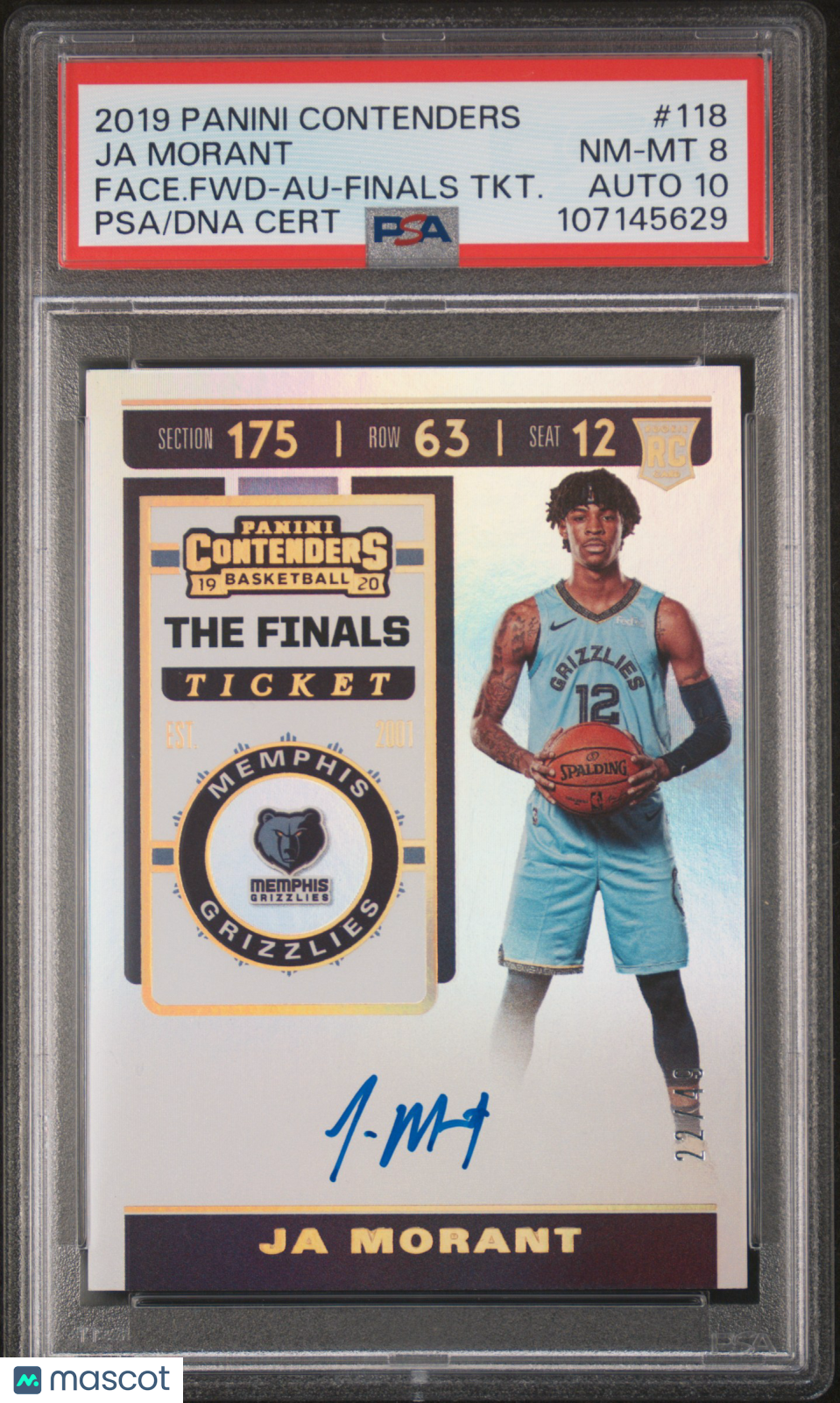 2019 Panini Contenders Ja Morant #118 Face. FWD Au Finals TKT. PSA 8 Auto 10
