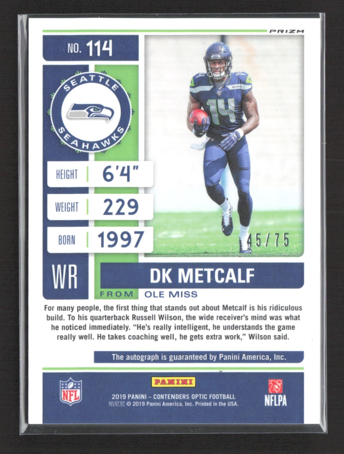 2019 Panini Contenders Optic - Rookie Ticket DK Metcalf #114 Blue /75 Auto