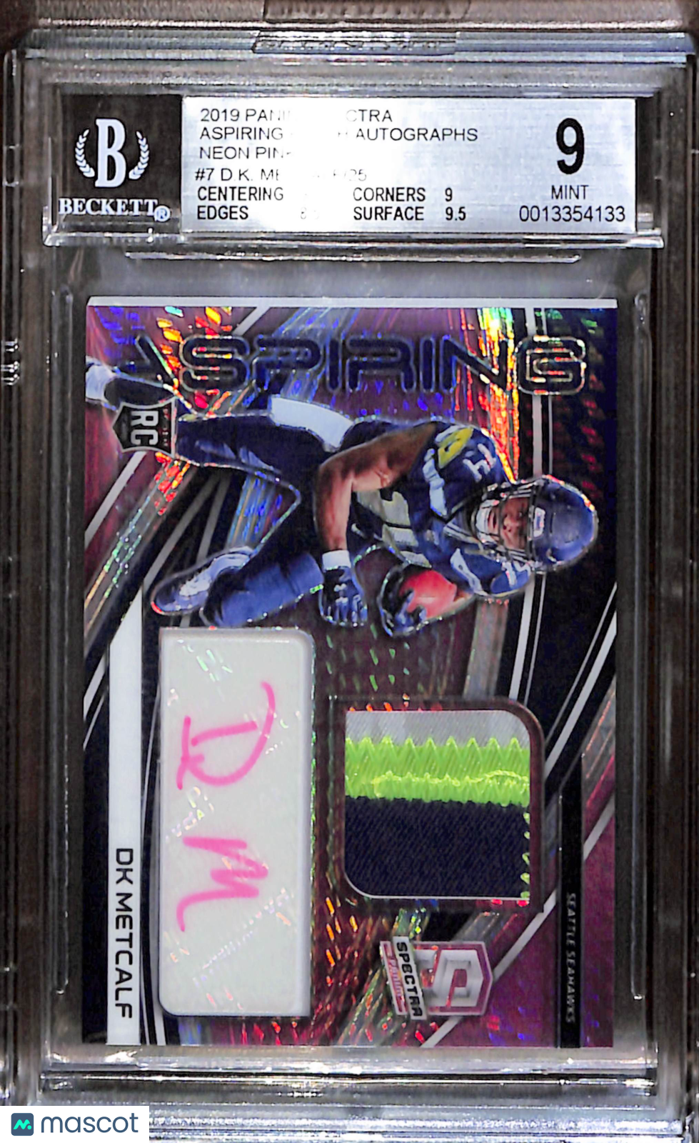 2019 Panini Spectra Aspiring Patch Auto Neon Pink D.K. Metcalf /25 BGS 9 Auto 10
