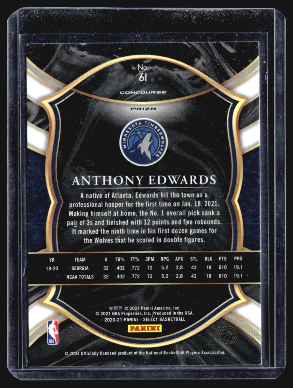 2020-21 Panini Select - Concourse #61 Anthony Edwards (RC) Retail Blue Prizm