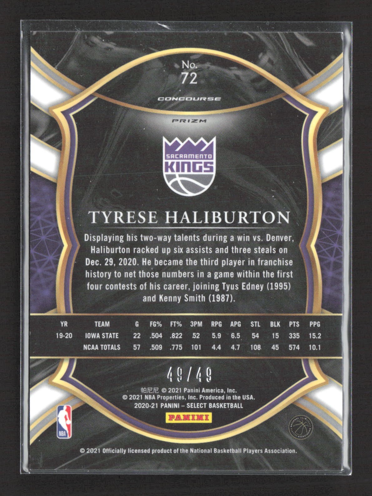 2020-21 Panini Select Concourse Tyrese Haliburton #72 Blue Green Flash /49 Rc