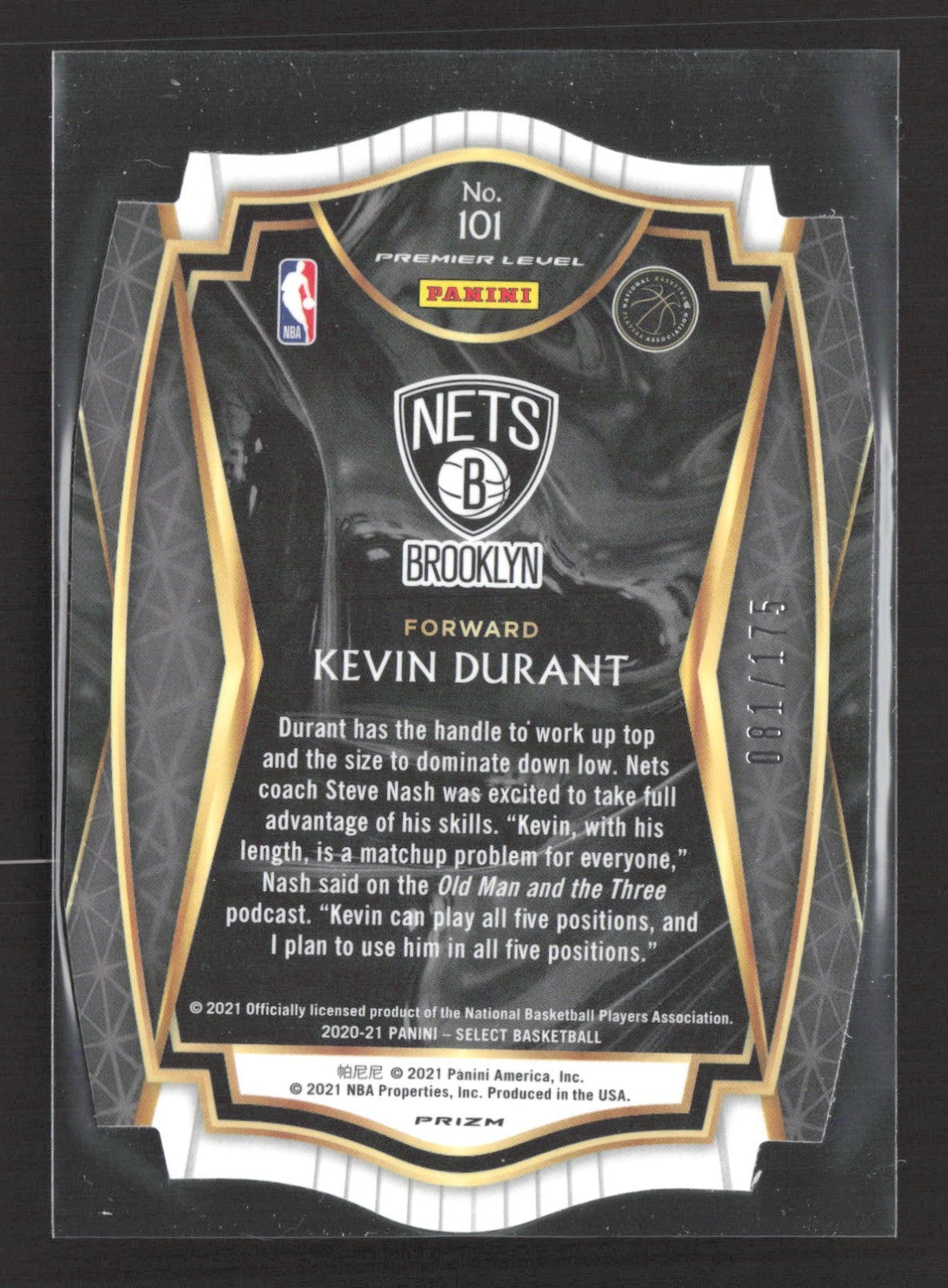 2020-21 Panini Select Premier Level Kevin Durant #101 Maroon Prizm Die-Cut /175