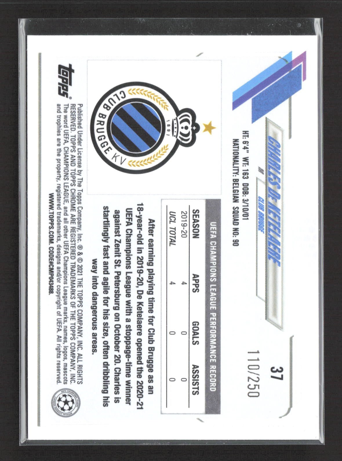 2020-21 Topps Chrome Charles De Ketelaere Purple Speckle /250 #37