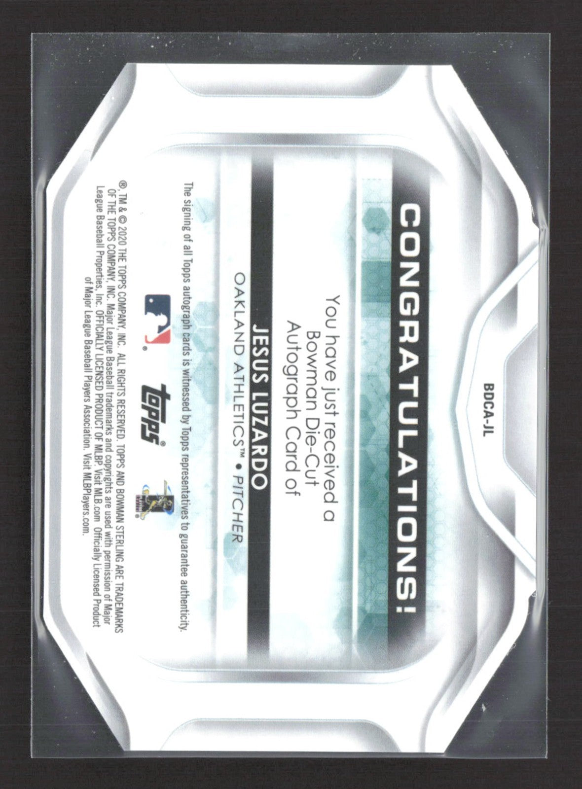 2020 Bowman Sterling Die-Cut Auto Jesus Luzardo #BDCA-JL Blue Glow /25