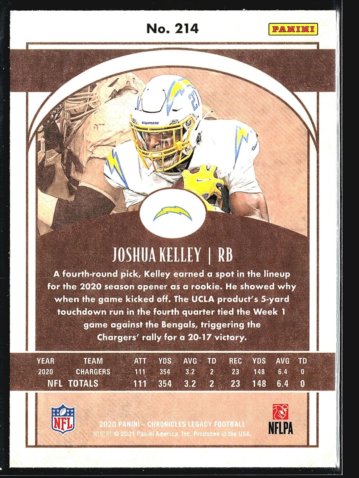 2020 Panini Chronicles - Legacy Update Rookies #214 Joshua Kelley (RC) Listed With Mascot. Read more