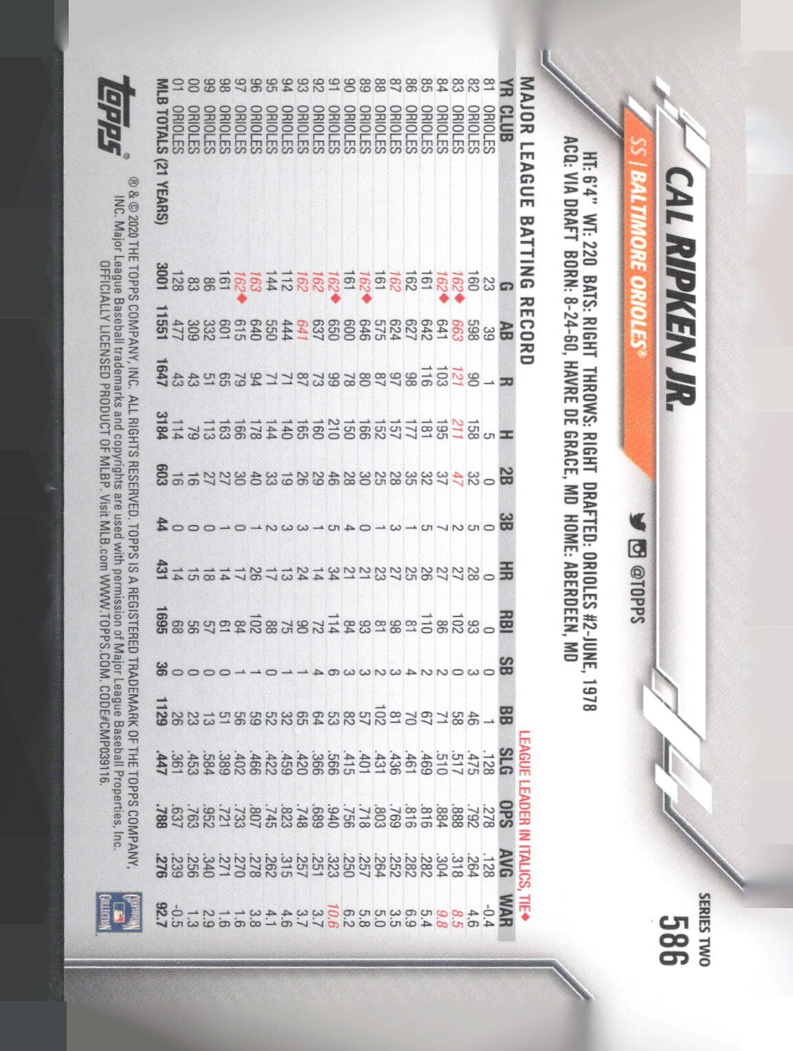 2020 Topps Cal Ripken Jr Sp Photo Variation #586