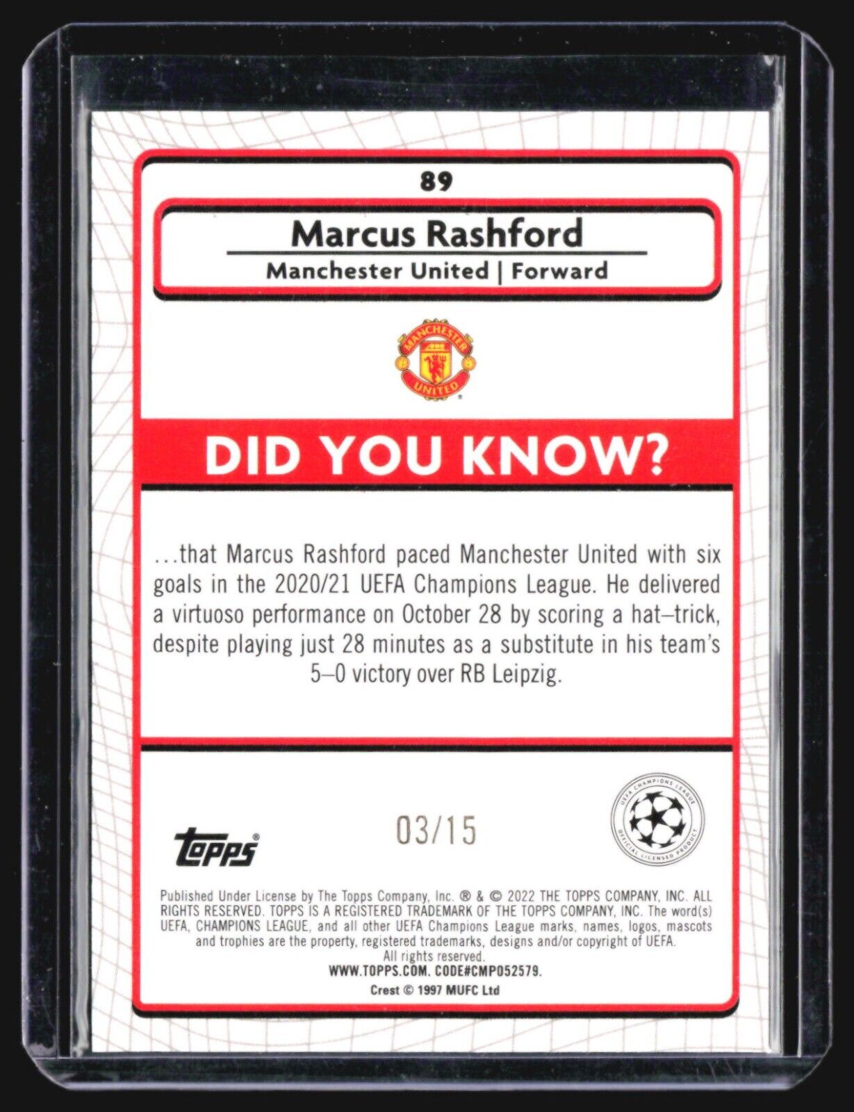 2021-22 Merlin Chrome Marcus Rashford Purple Refractor /15
