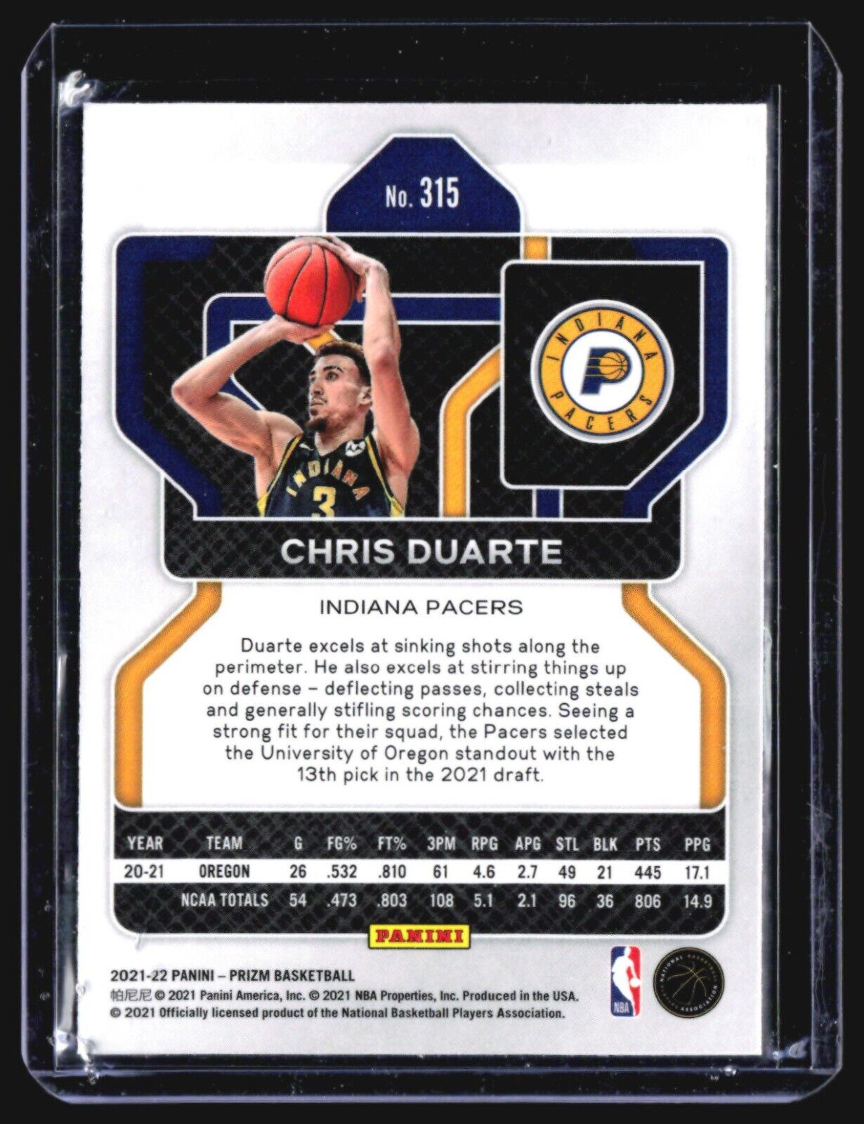 2021-22 Panini Prizm Chris Duarte Rc #315