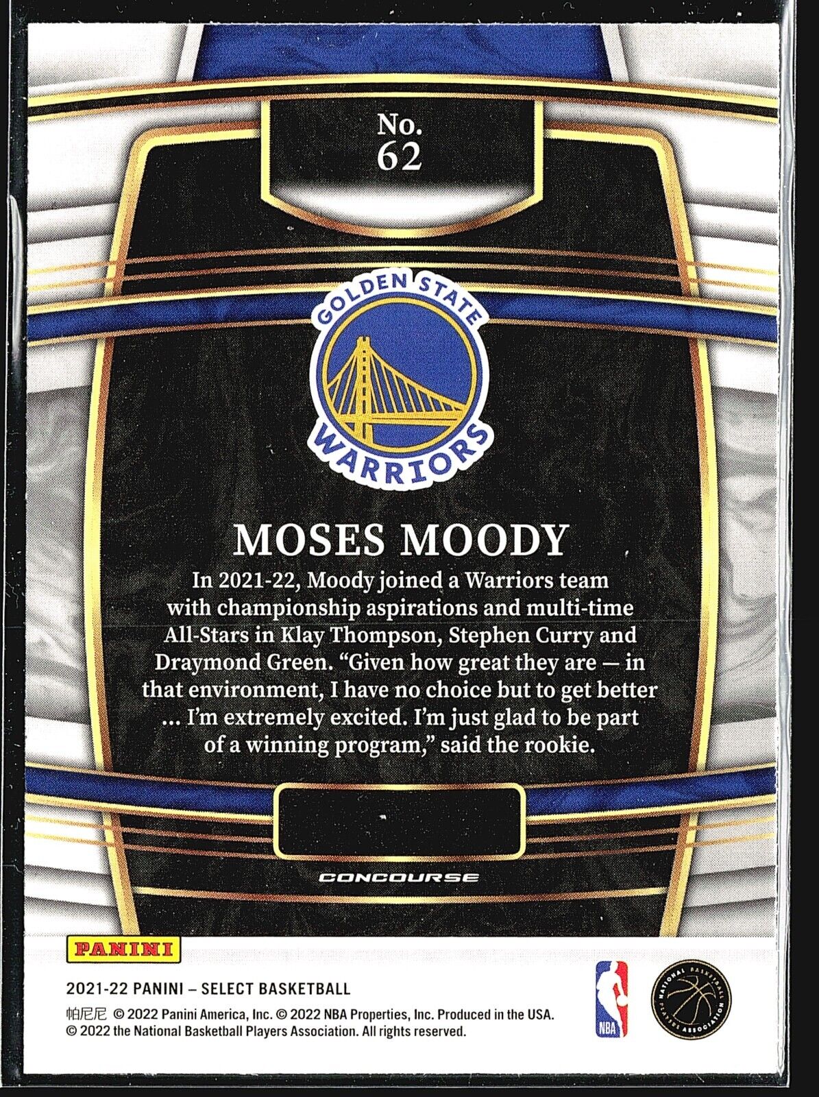 2021-22 Panini Select - Concourse #62 Moses Moody (RC)