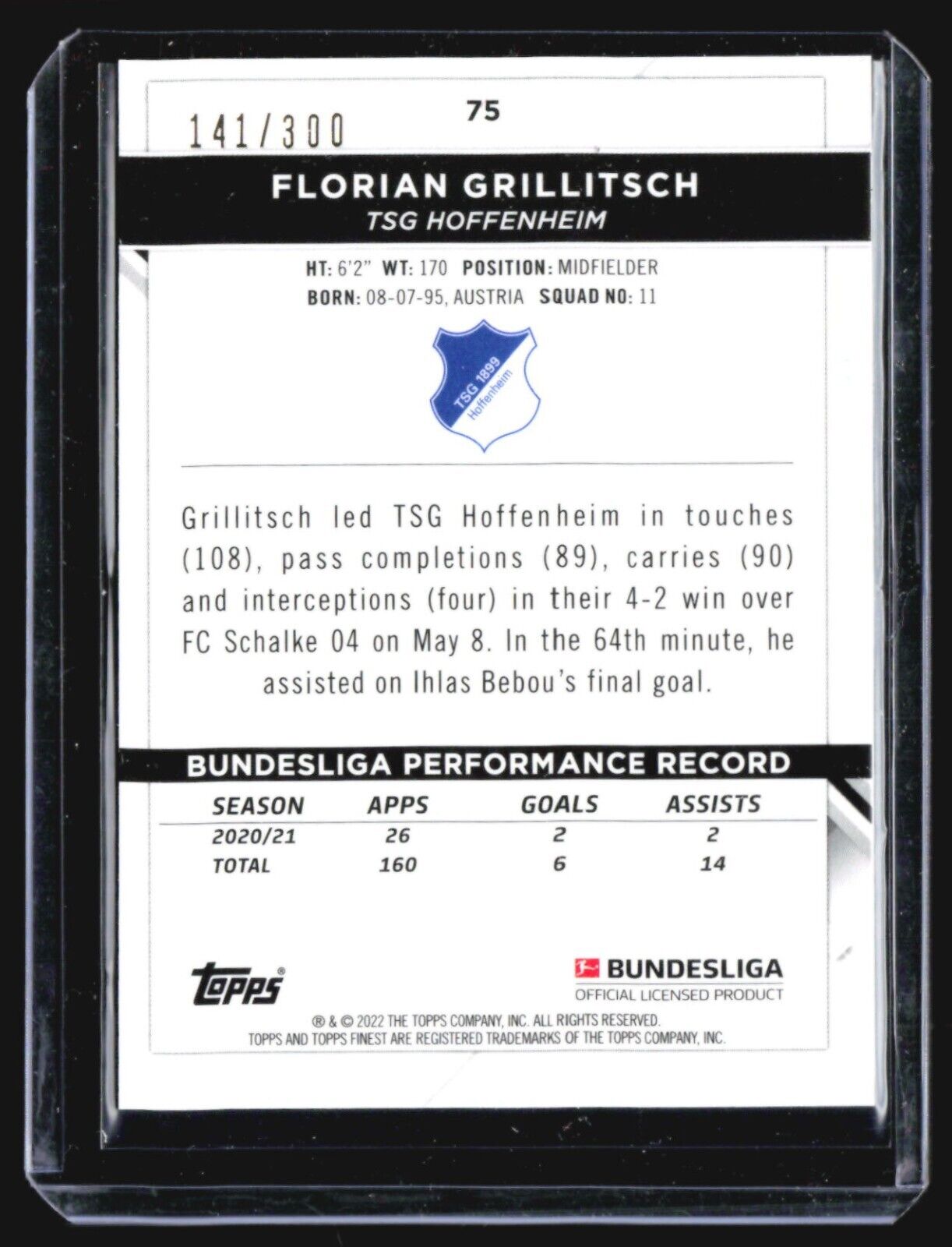 You are purchasing a 2021-22 Topps Finest Bundesliga Florian Grillitsch #75. You will receive the exact item in the photographs.... Read more