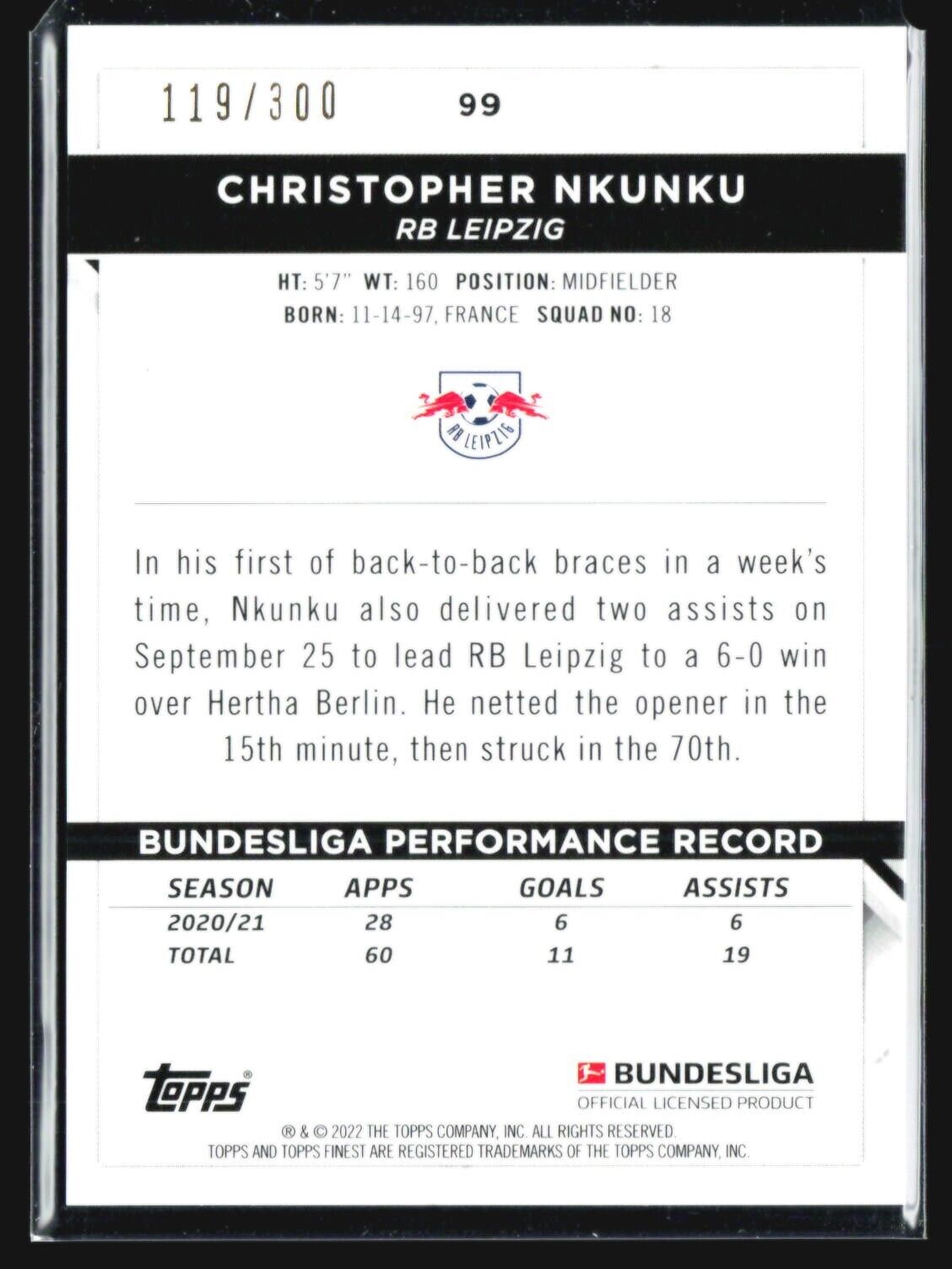 2021-22 Topps Finest Bundesliga - #99 Christopher Nkunku Pink /300