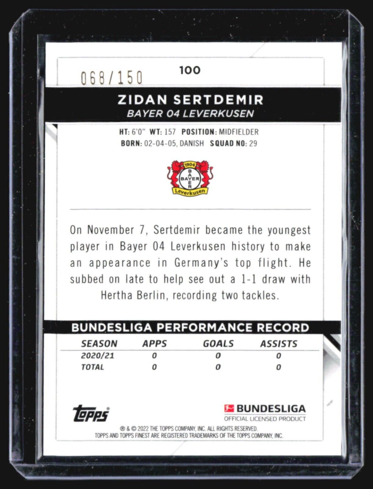 2021-22 Topps Finest Zidan Sertdemir Rc Blue Refractor /150 #100