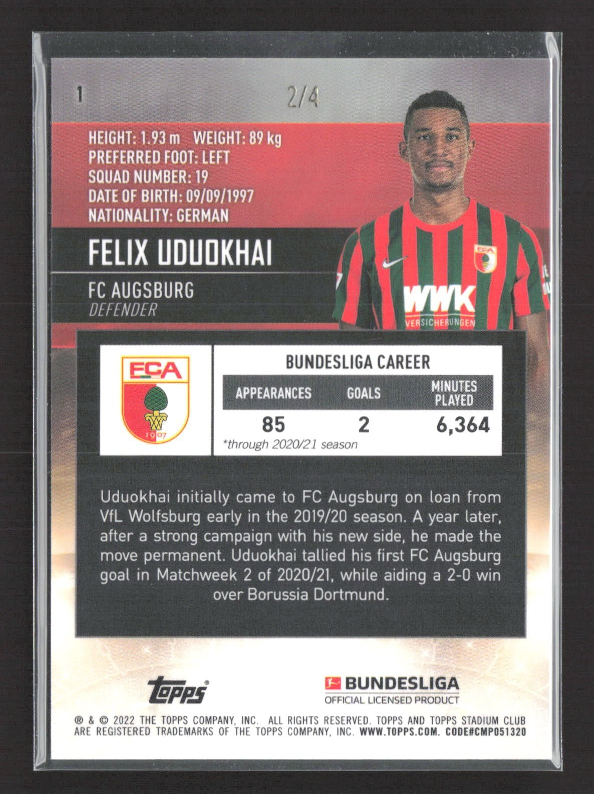 2021-22 Topps Stadium Chrome Felix Uduokhai Red Orange Electric /4 #1