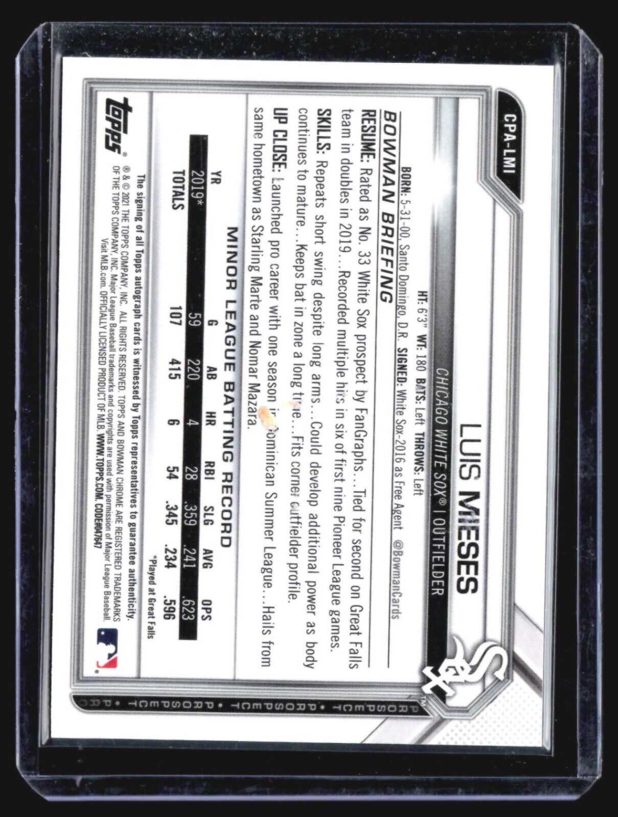 2021 Bowman Chrome - Prospect Autographs #CPA-LMI Luis Mieses Auto